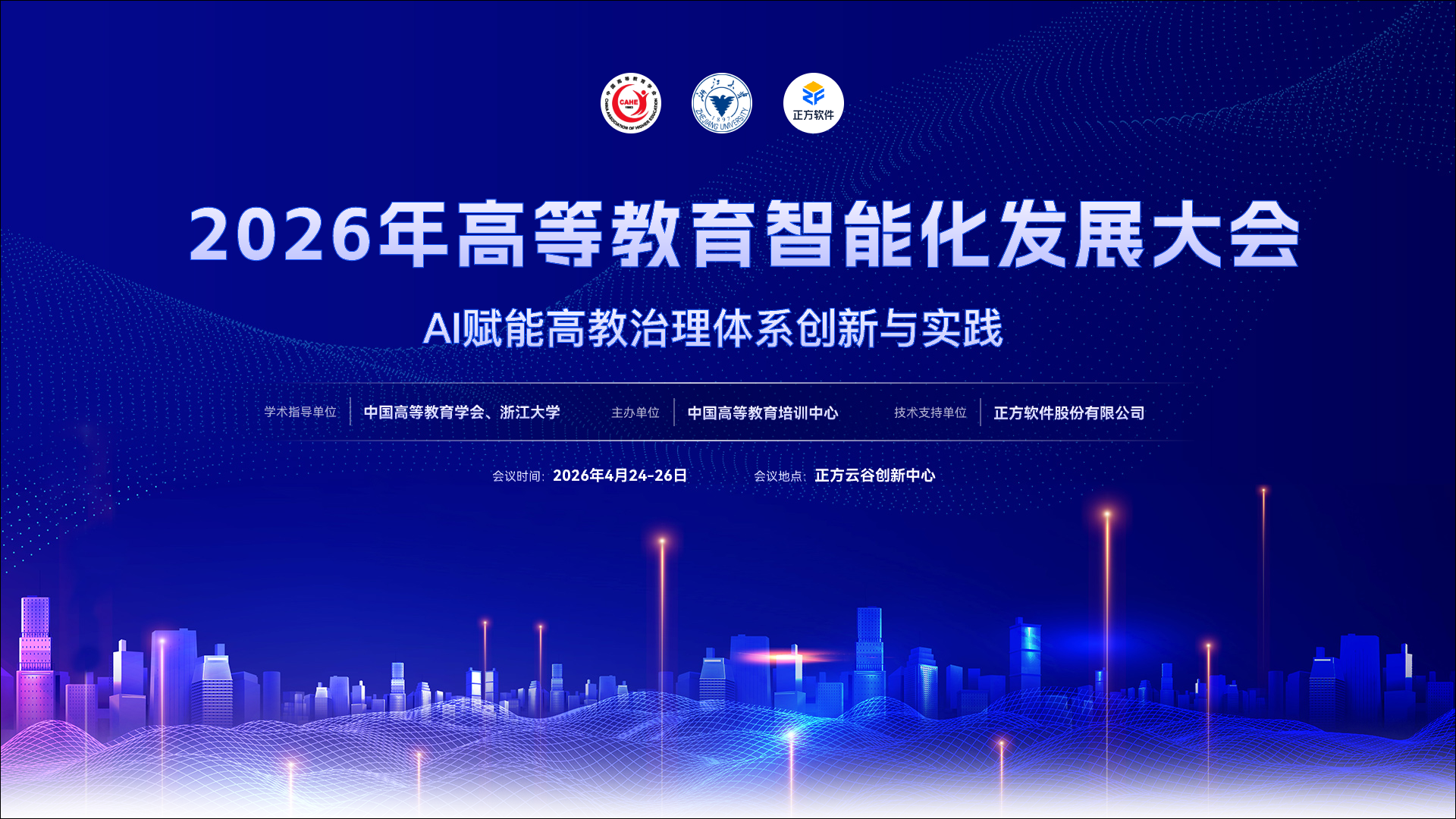 为深入贯彻党的二十届四中全会关于“十五五”规划的部署要求,落实《教育强国建设规划纲要(2024—2035年)》与《教育部等九部门关于加快推进教育数字化的意见》精神,立足教育、科技、人才一体发展格局,抢抓新一轮科技革命与产业变革机遇,全面实施“人工智能+教育”行动,加快高等教育数字化转型与智慧治理体系建设,助力高校在“十五五”时期实现质量跃升,由中国高等教育学会和浙江大学学术指导、中国高等教育培训中心主办、正方软件股份有限公司提供技术支持的“2026年高等教育智能化发展大会”将于2026年4月24-26日在杭州召开。
