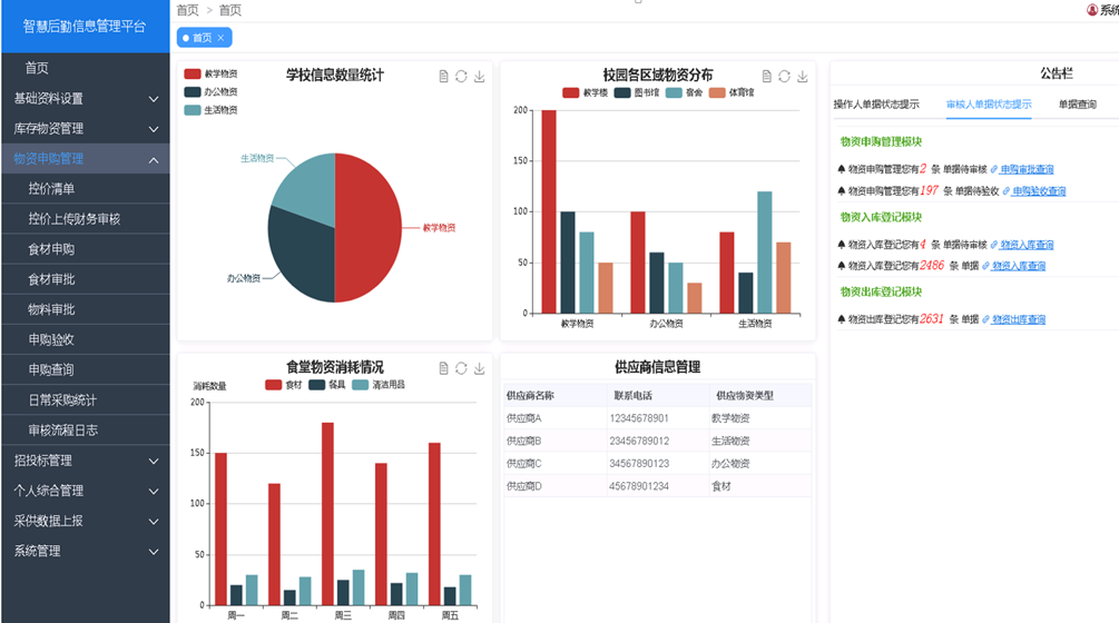 平台引入内控管理机制,实现高校后勤物资全过程信息化留痕管理。